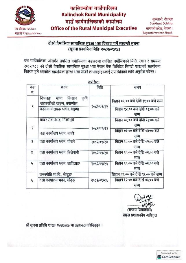 दोस्रो त्रैमासिक सामाजिक सुरक्षा भत्ता वितरण गर्ने सम्बन्धी सूचना !!!