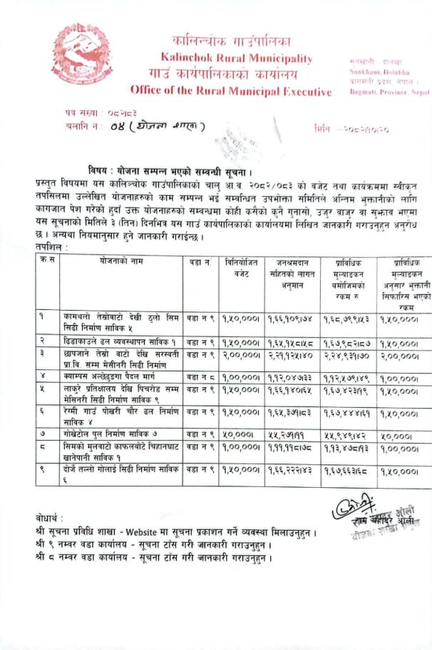 योजना सम्पन्न भएको सम्बन्धी सूचना !!!