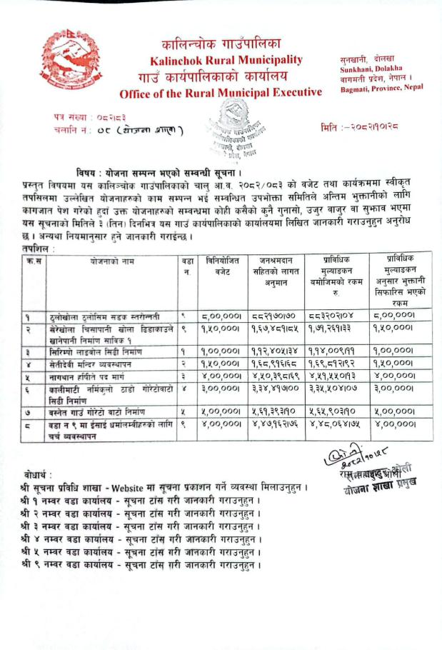 योजना सम्पन्न भएको सम्बन्धी सूचना !!!