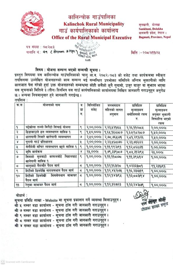 योजना सम्पन्न भएको सम्बन्धी सूचना !!!