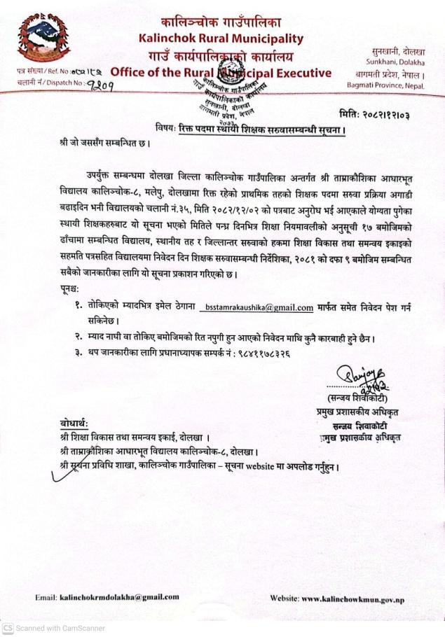रिक्त पदमा स्थायी शिक्षक सरुवा सम्बन्धी सूचना !!!
