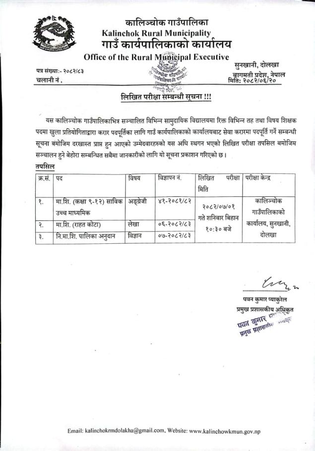 लिखित परिक्षा सम्बन्धी सूचना !!!