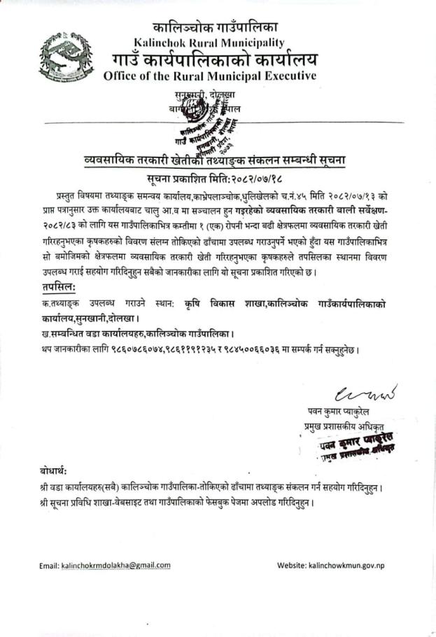 व्यवसायिक तरकारी खेतीको तथ्याङ्क संकलन सम्बन्धी सूचना !!!