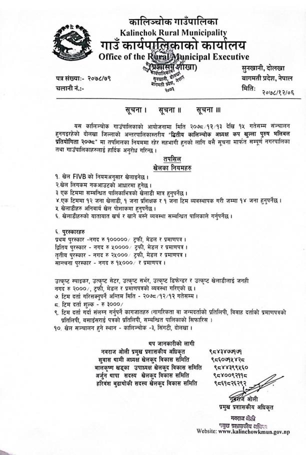 द्वितीय अध्यक्ष भलिबल प्रतियोगिता सम्बन्धी सूचना