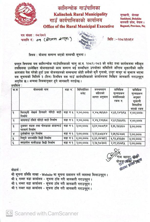 योजना सम्पन्न भएको सम्बन्धी सूचना !!!