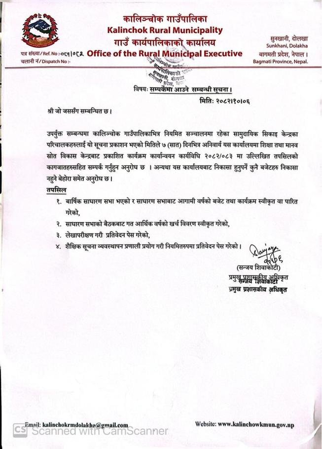 सम्पर्कमा आउने सम्बन्धी सूचना !!!