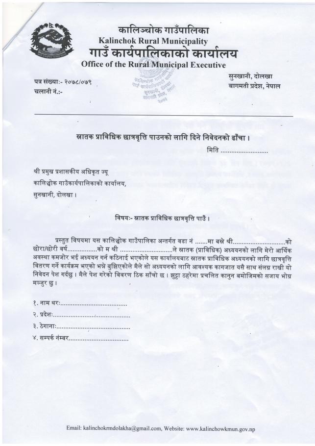 स्नातक प्राविधिक छात्रवृत्तिको लागि निवेदन पेश गर्ने सम्बन्धी सूचना